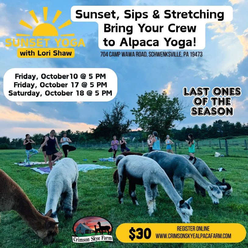 Sunset, Sips & Stretching – Bring Your Crew to Alpaca Yoga!